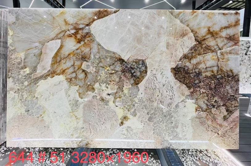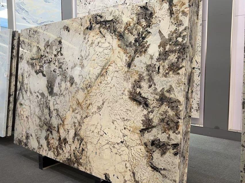 Patagonia is a luxurious and breathtaking natural stone known for its dramatic mix of white, cream, black, gold, and translucent quartz patches. Each slab is uniquely patterned, resembling a natural collage of crystals and minerals. Bold and eye-catching, Patagonia is ideal for feature walls, benchtops, and statement pieces. Its strength and rarity make it a favorite for high-end interior designs.